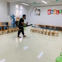 Nhà trường đã chỉ đạo phun thuốc muỗi và tiến hành tổng vệ sinh toàn bộ xung quanh môi trường trong và ngoài lớp học.
