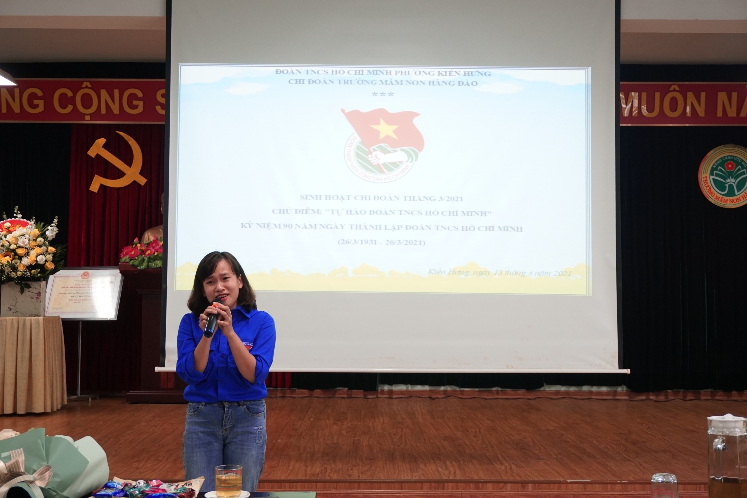 "Câu chuyện tháng 3 - Tháng của Thanh niên - Tháng của những cô giáo trẻ trường Mầm non Hàng Đào" Buổi sinh hoạt chi đoàn của trường MẦM NON HÀNG ĐÀO với chủ điểm "Tự hào Đoàn Thanh Niên Cộng Sản Hồ Chí Minh" hướng tới kỉ niệm 90 năm ngày thành lập Đoàn TNCSHCM (26/3/1931 - 26/3/2021) Tuy chỉ diễn ra trong thời gian ngắn nhưng không khí luôn sôi nổi, tràn ngập tiếng cười và hạnh phúc! Xin chân thành cảm ơn đến BCH Đoàn phường Kiến Hưng, Ban giám hiệu nhà trường, BCH Công đoàn, đã luôn tạo điều kiện cho chi đoàn Hàng Đào ngày càng phấn đấu vươn lên trong các hoạt động. Xin kính chúc cho các đồng chí đoàn viên trong chi đoàn - những cô giáo TEAM HÀNG ĐÀO luôn giữ vững nhiệt huyết của tuổi trẻ!