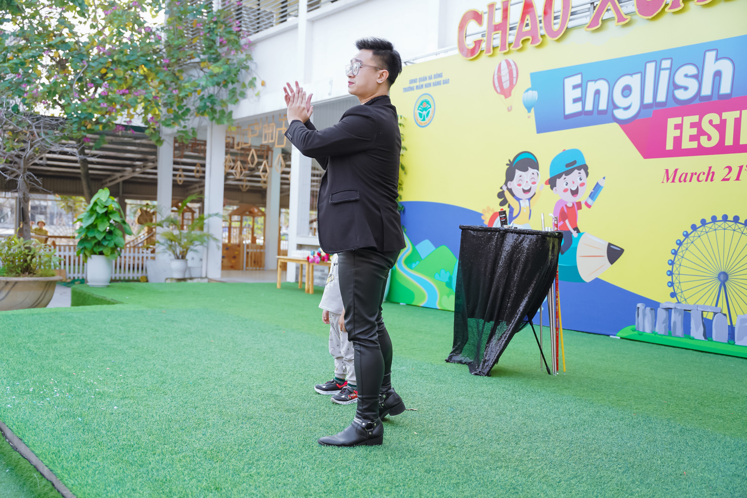 Bên cạnh hoạt động biểu diễn văn nghệ, các con được cùng nghệ sĩ ảo thuật biểu diễn các phần ảo thuật hết sức thú vị.