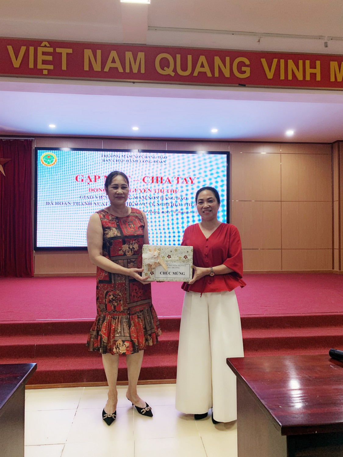 Và hôm nay Nhà trường - Công đoàn trân trọng tổ chức buổi lễ chia tay và cũng là sự ghi nhận, cảm ơn đối với cô giáo Nguyễn Thị Thu về nghỉ hưu theo chế độ khi đã cống hiến cả cuộc đời mình cho sự nghiệp trồng người.
