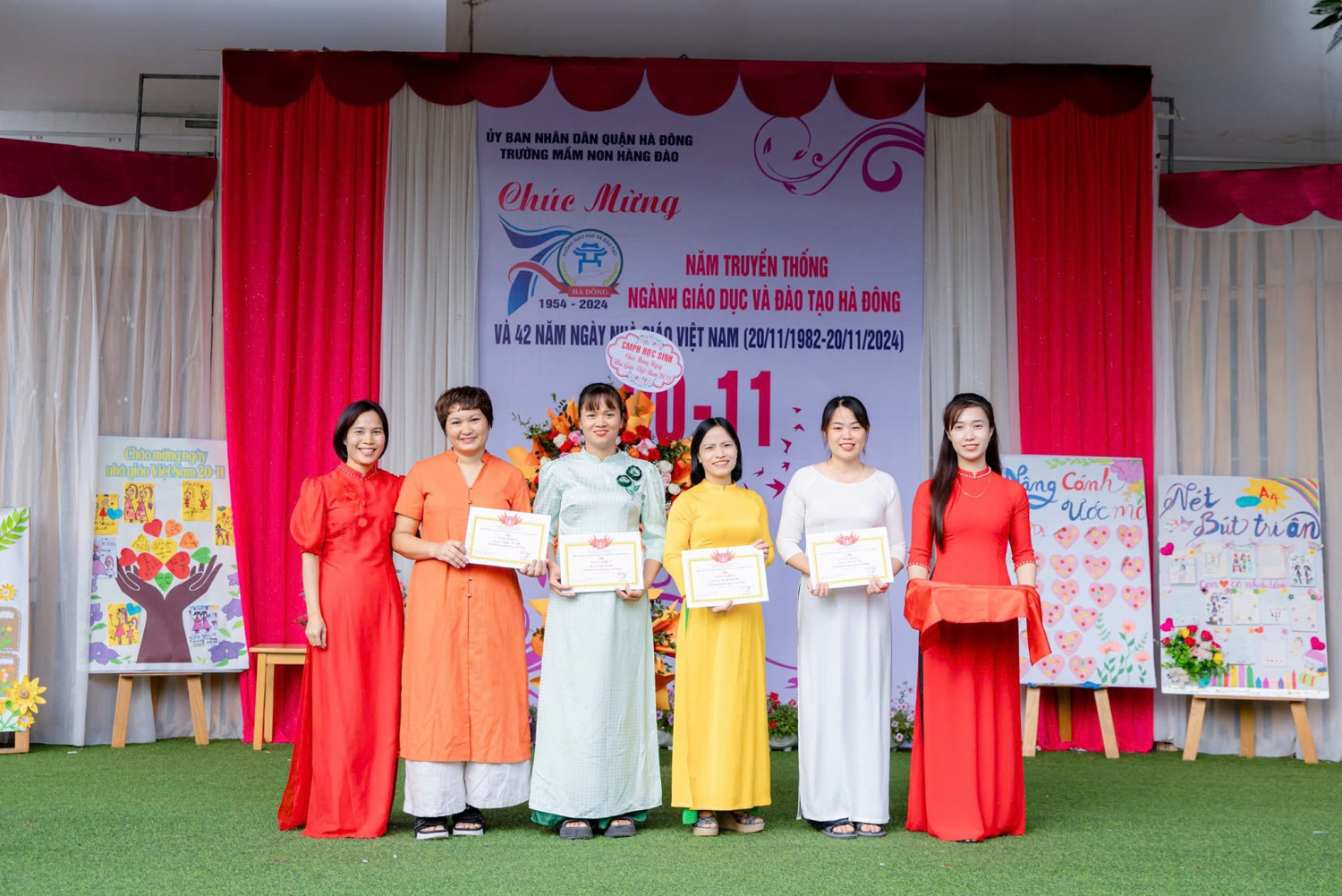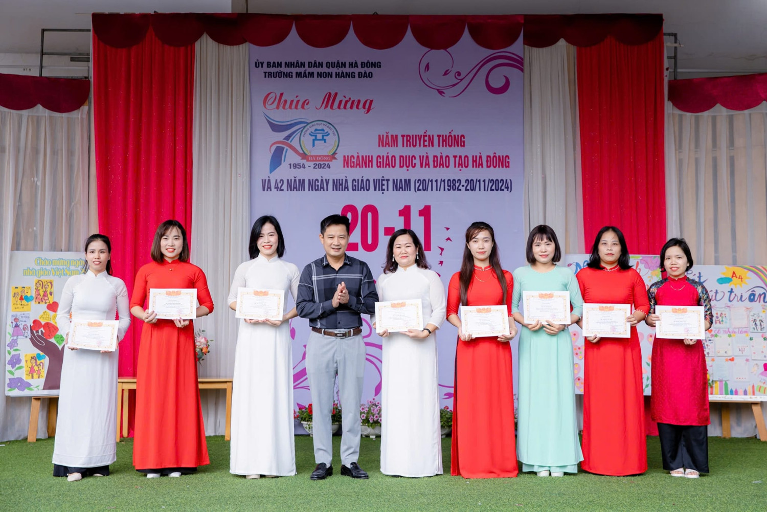 Ngày 19/11/2024 cô và trò Trường mầm non Hàng Đào tổ chức buổi lễ chào mừng 70 năm thành lập ngành và 42 năm ngày nhà giáo Việt Nam. Đến tham dự buổi lễ có đồng chí Nguyễn Quang Tuấn – Phó chủ tịch UBND phường Kiến Hưng và bà Nguyễn Thị Diệu Hương - Cán bộ công chức văn hóa Phường Kiến Hưng, Hội cha mẹ học sinh Trường mầm non Hàng Đào.