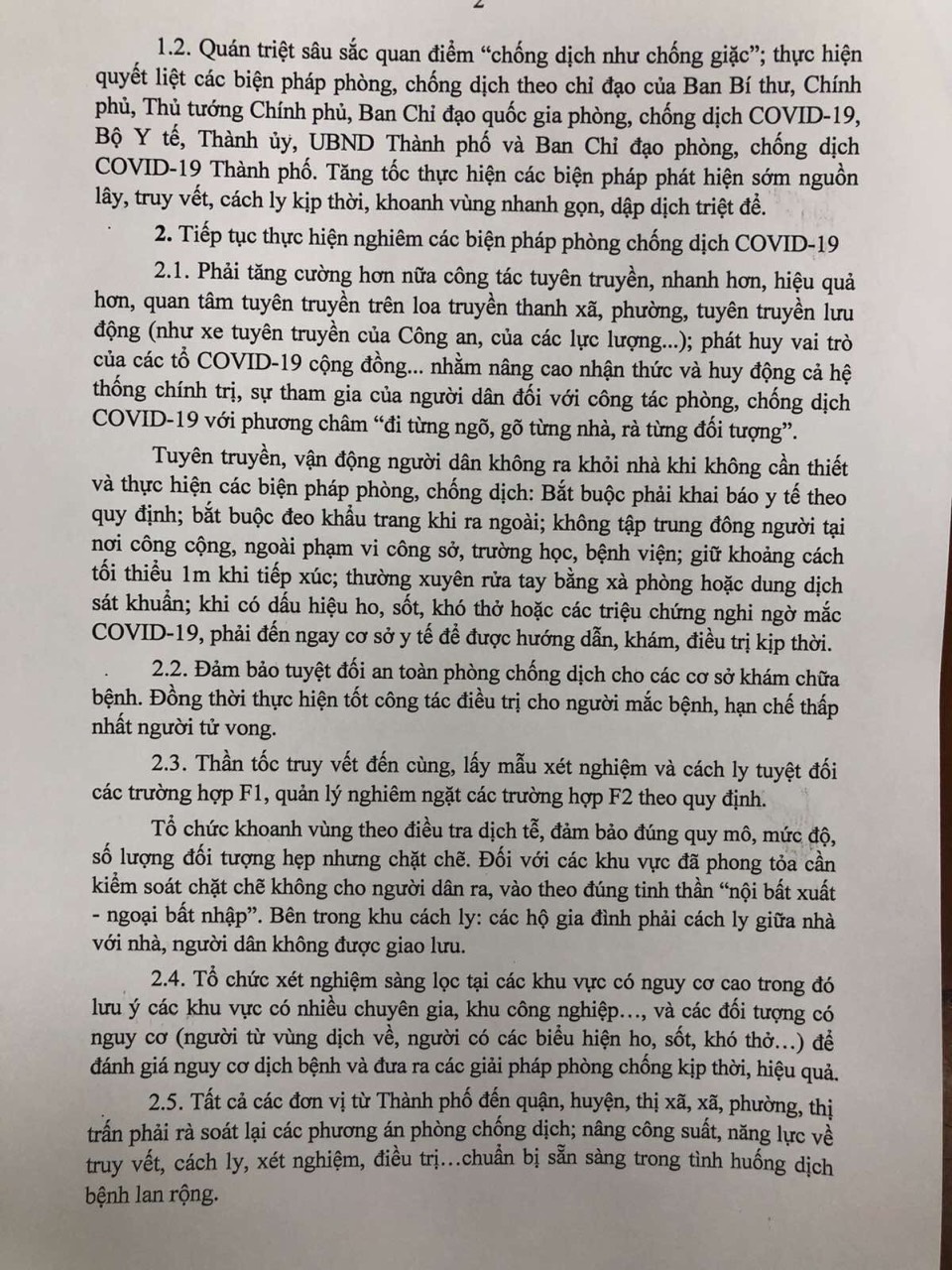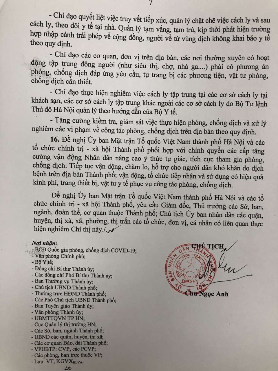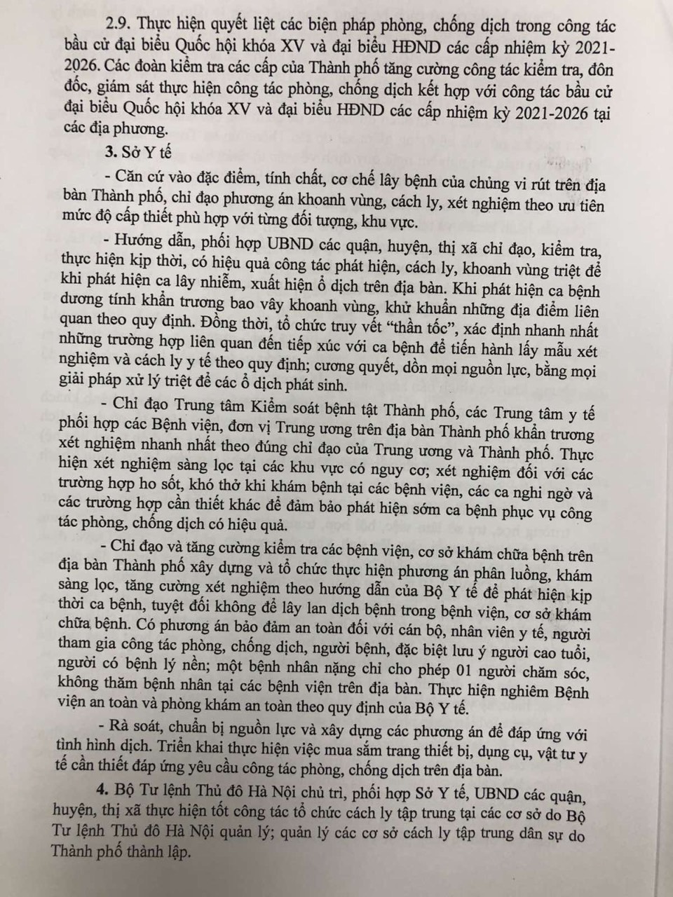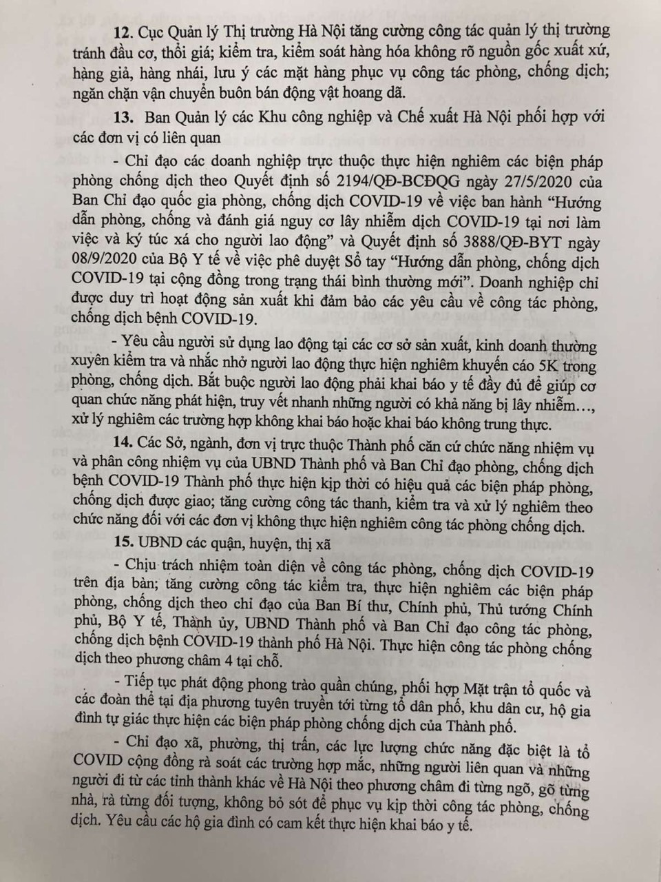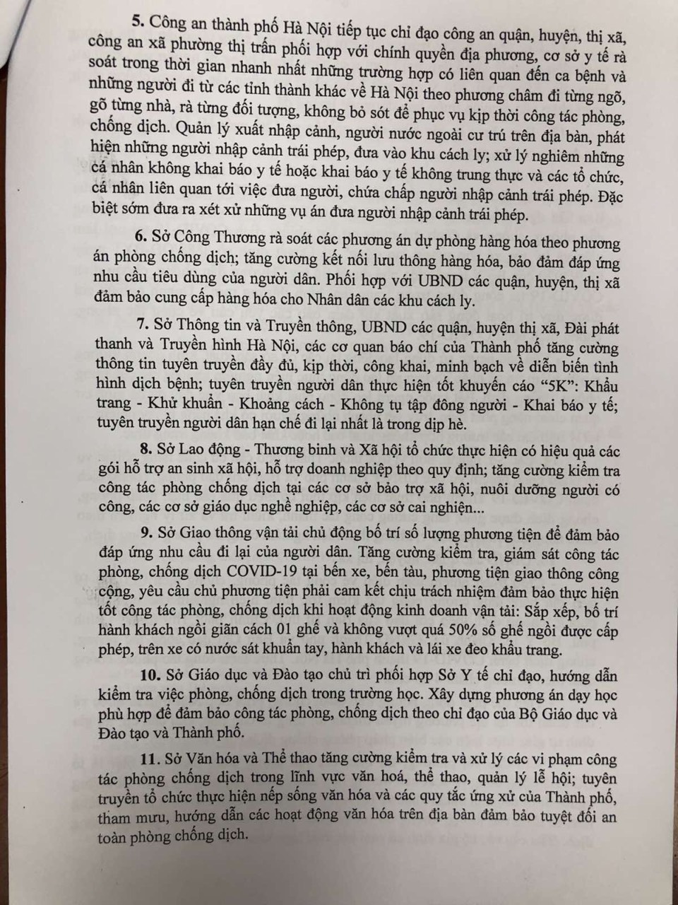 Thực hiện Chỉ thị số 11/CT-UBND của UBND thành phố về tăng cường thực hiện quyết liệt các biện pháp phòng chống dịch COVID-19 trong tình hình mới.