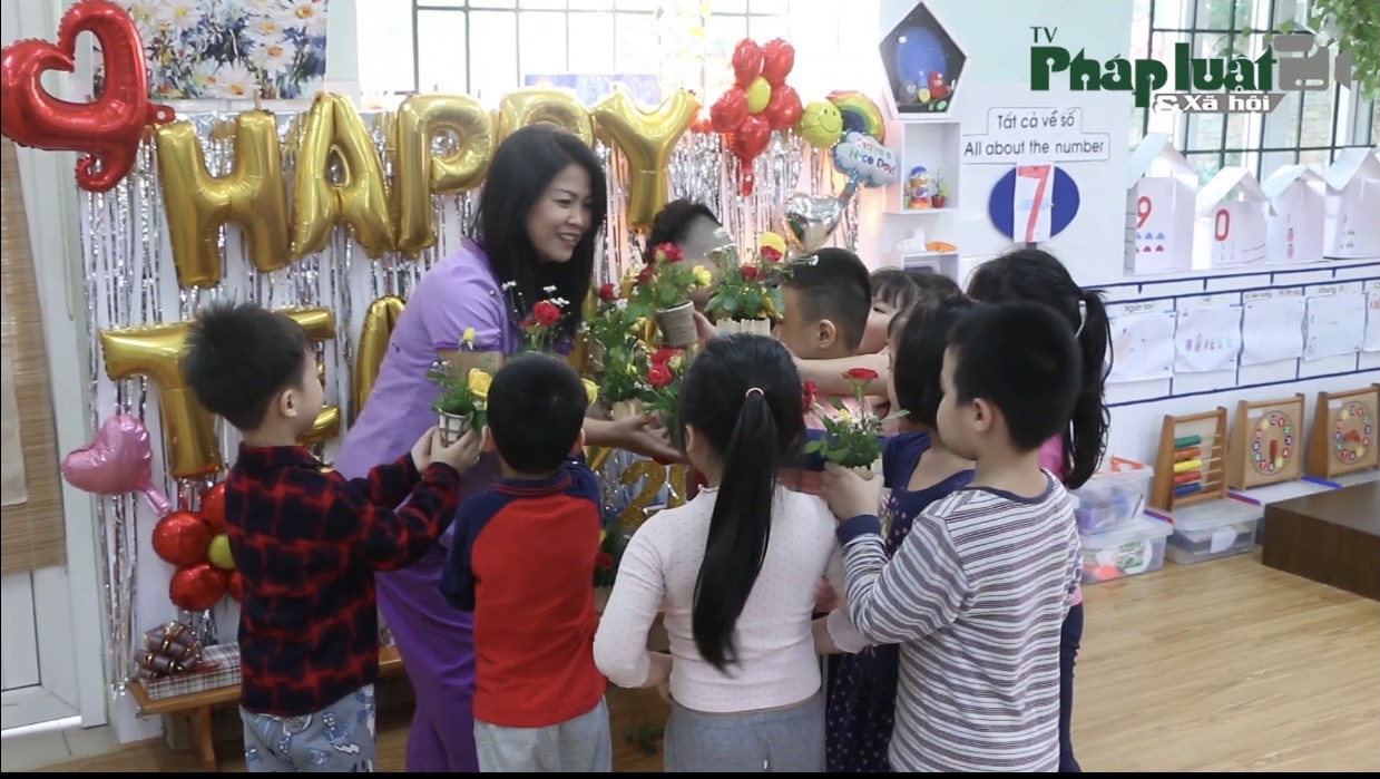 Các bạn học sinh lớp A1-trường Mầm non Hàng đào- quận Hà Đông chúc mừng cô