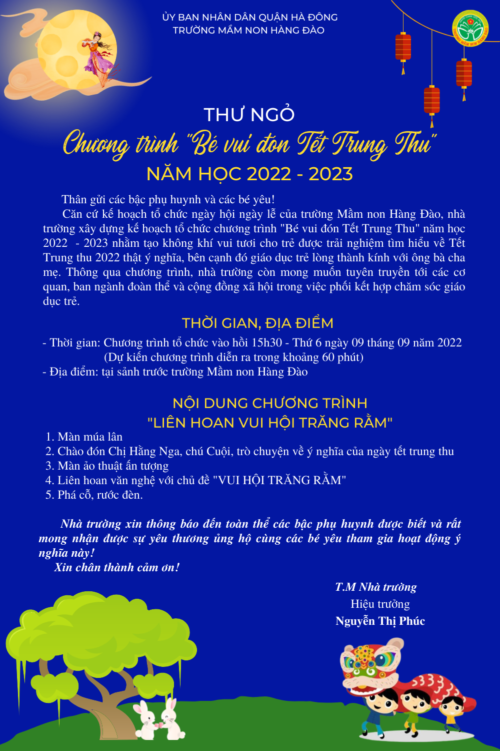 hư ngỏ Chương trình " Bé vui Đón tết trung thu" năm học 2022-2023.