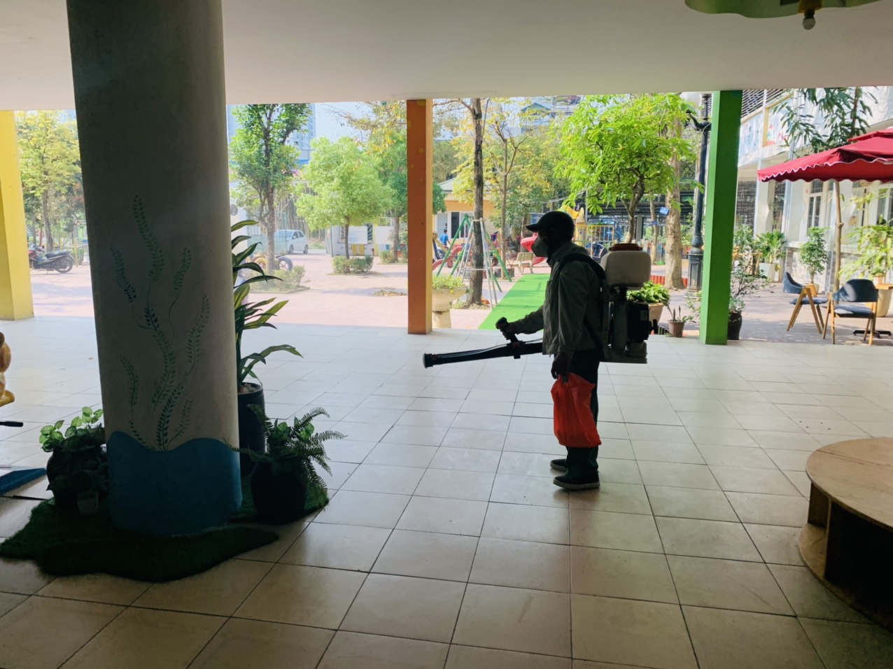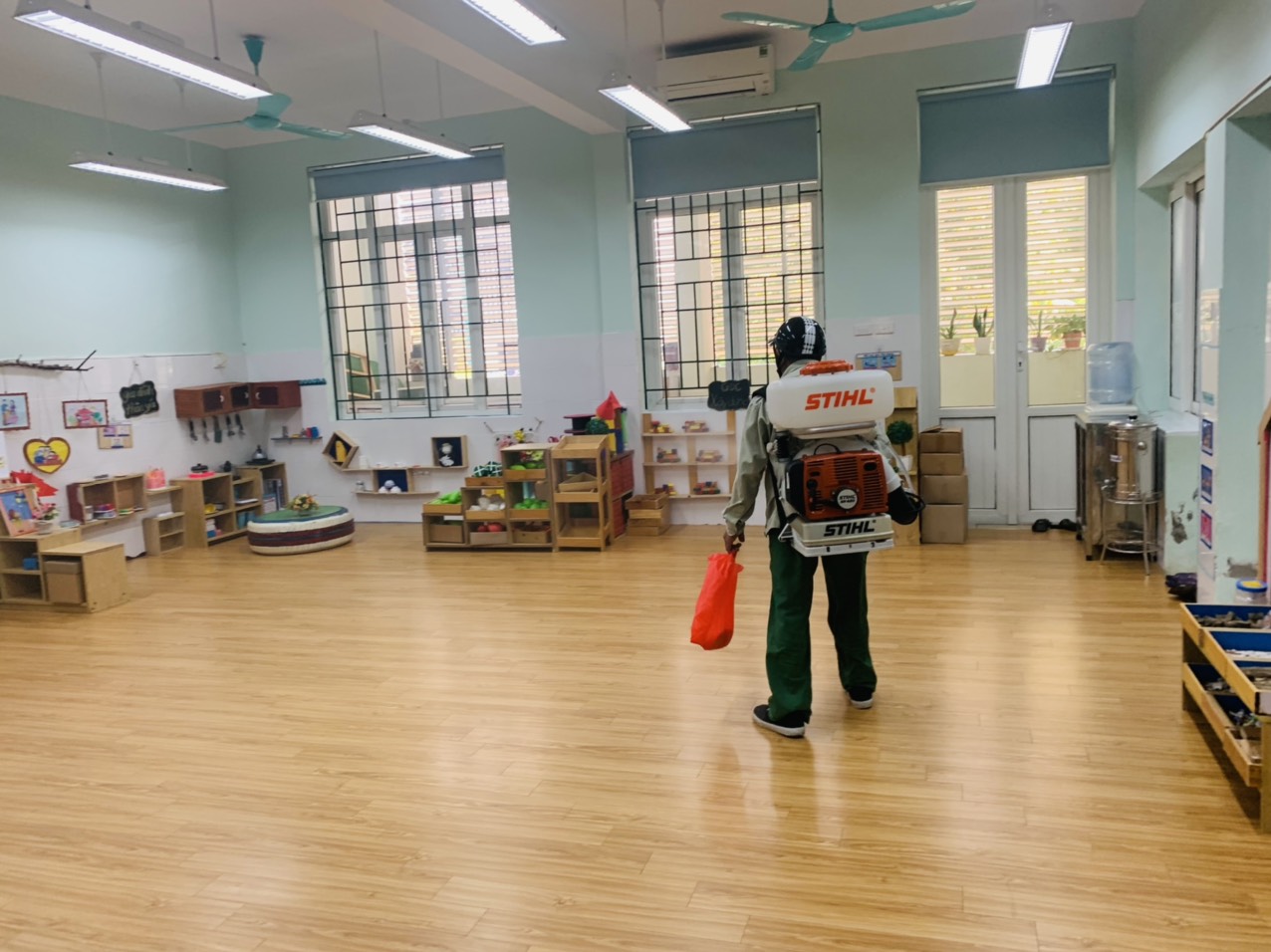Trường Mầm non Hàng Đào tổ chức phun thuốc muỗi đảm bảo môi trường an toàn cho trẻ đến trường